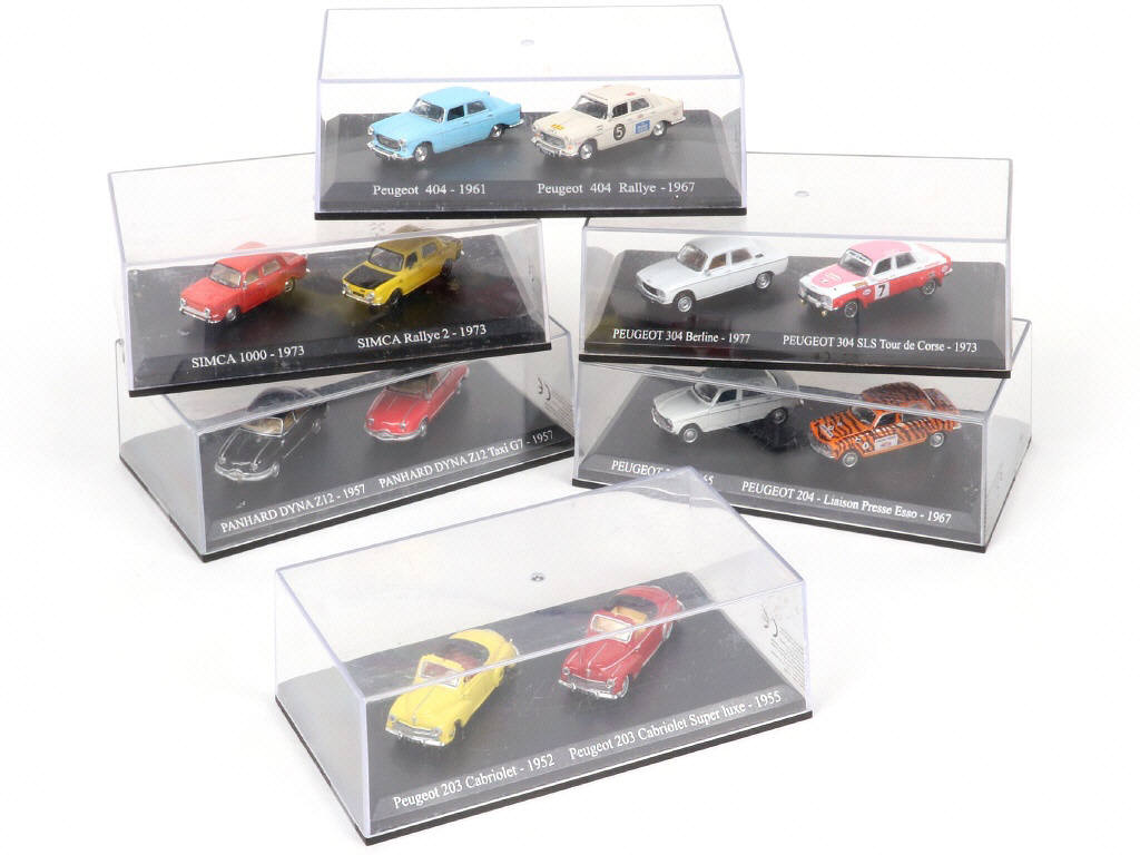 modèles vendus en kiosque - petite échelle - miniatures reproduisant les modèles : PEUGEOT, SIMCA & PANHARD - les boîtes sont en état 'b' & 'c'