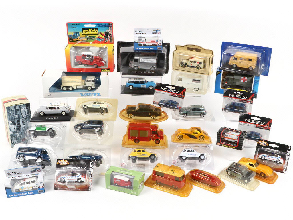 différentes échelles - comprend notamment les marques : NOREV, SOLIDO & VEREM - boîtes en état 'a' à 'c' - possibilité de petits manques & parties cassées