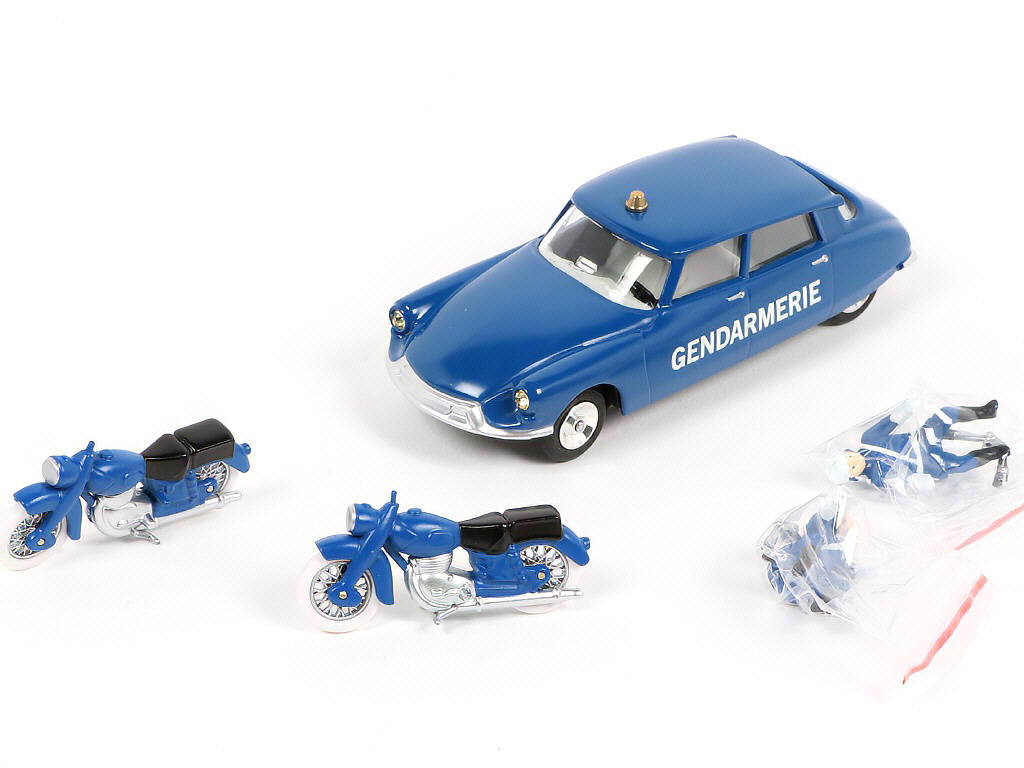 modèle 'EXPORT' - série limitée numérotée 000/000E - contient : CITROËN DS 'GENDARMERIE' & 2 motards sur leurs motos