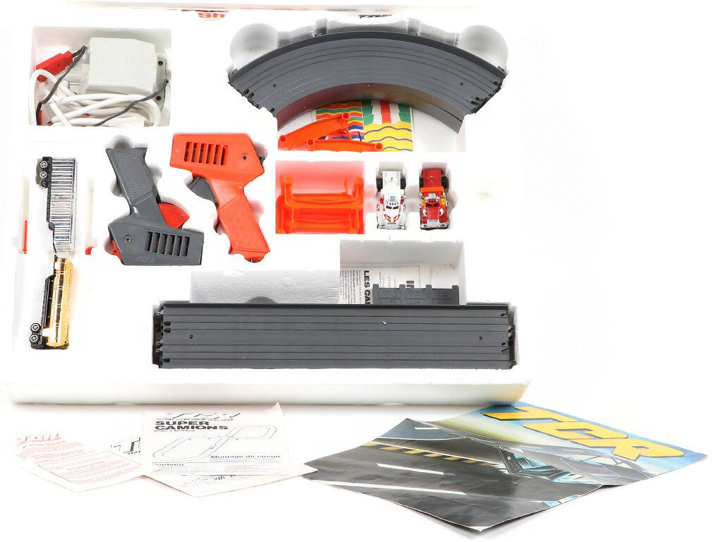 année 1982 - semble complet (non testé) - longueur des rails '4,40 m' - avec notice - manque un pneu d'un semi-remorque - A VENIR RECUPERER SUR PLACE DE PREFERENCE (SURCOUT A PREVOIR POUR UNE EXPEDITION !)