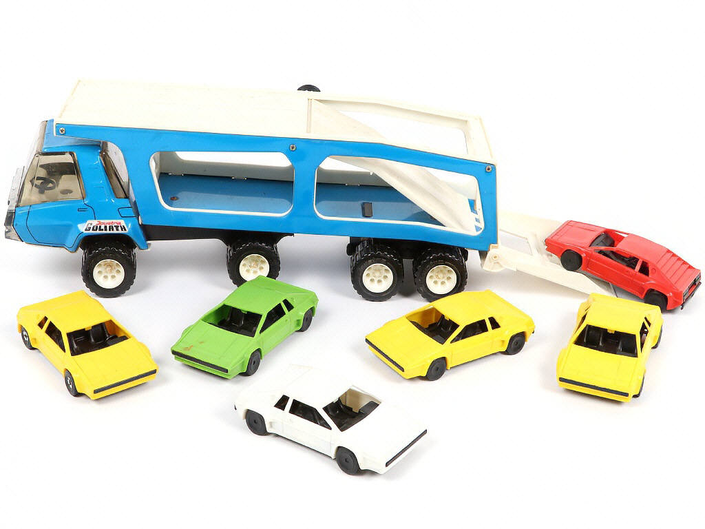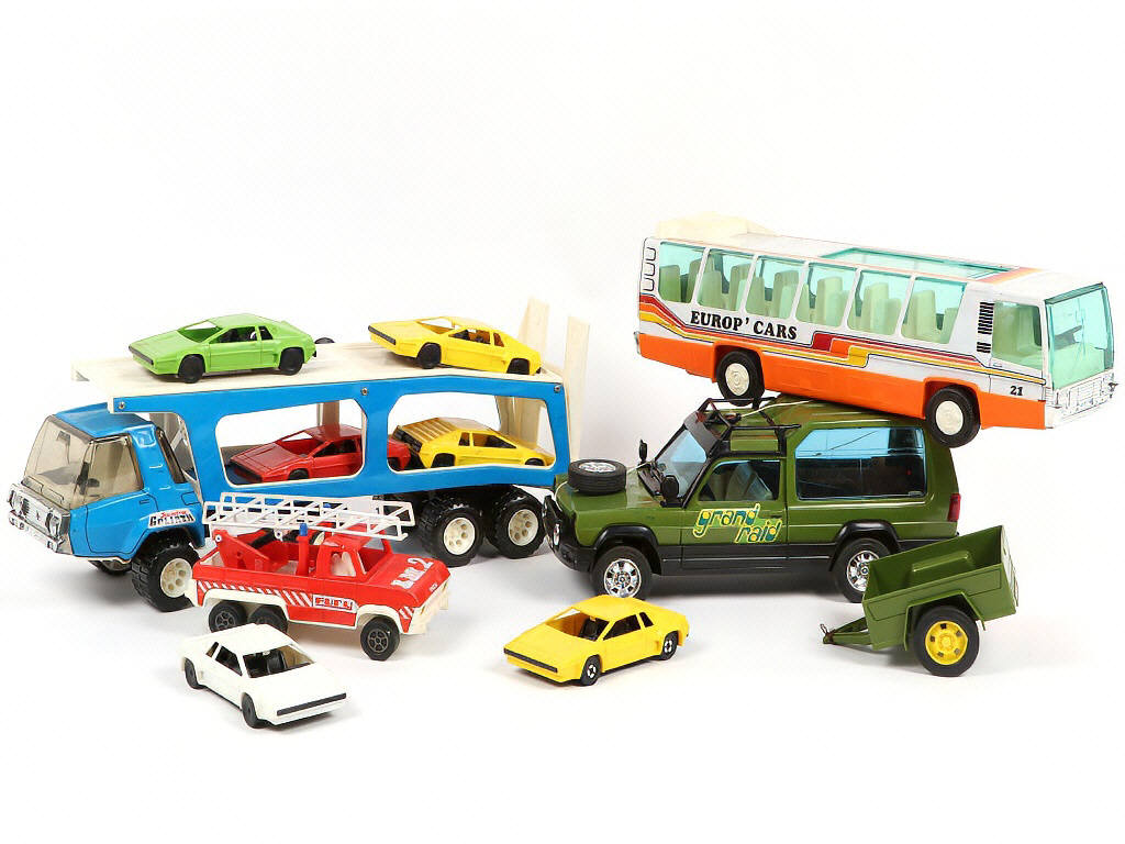 comprend notamment les modèles : semi-remorque Transport-Autos 'GOLIATH' avec 6 voitures, L'EUROP' CARS & le RANCHO Grand Raid (attache de remorque cassée