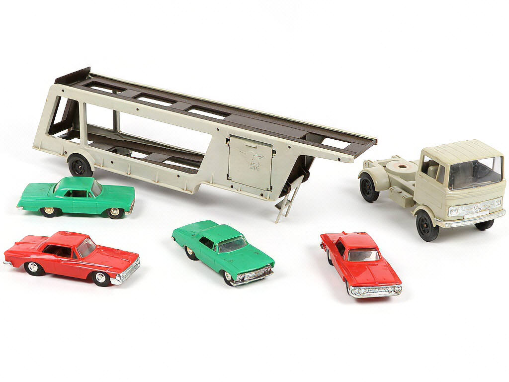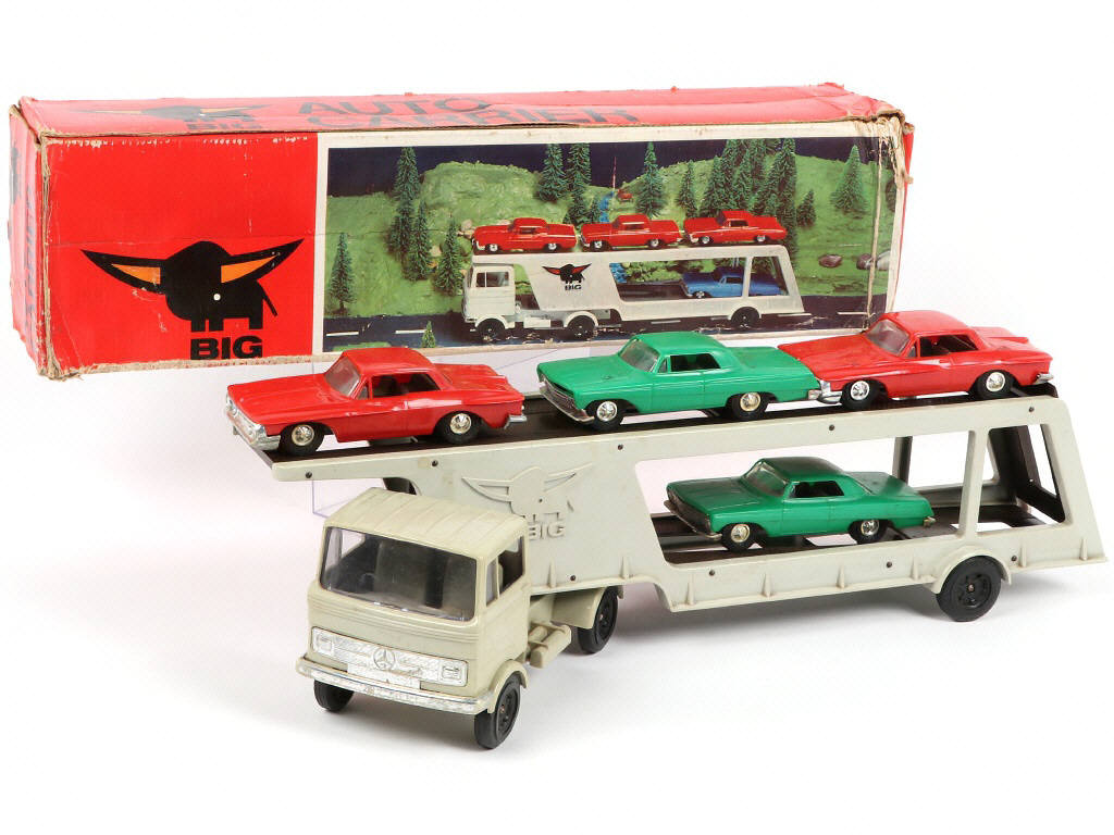 BIG (ALLEMAGNE) 75 MERCEDES Semi-remorque transport de voiture gris & maron
