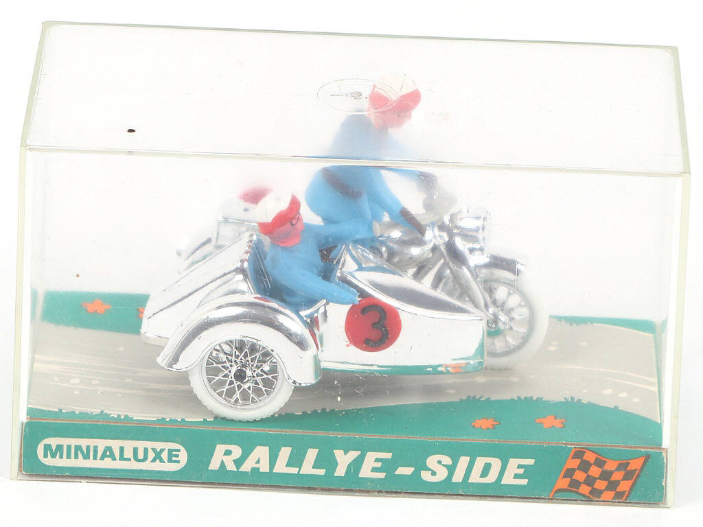 MINIALUXE (FRANCE) Side-car de rallye chromé, bleu & rouge