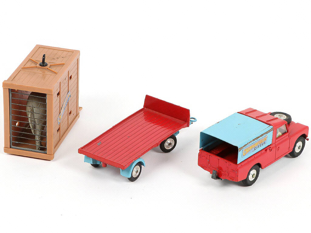 CORGI TOYS (GB) GS19 LAND ROVER Pick-up bâché 'CHIPPERFIELD' avec remorque cage à éléphant rouge & bleu
