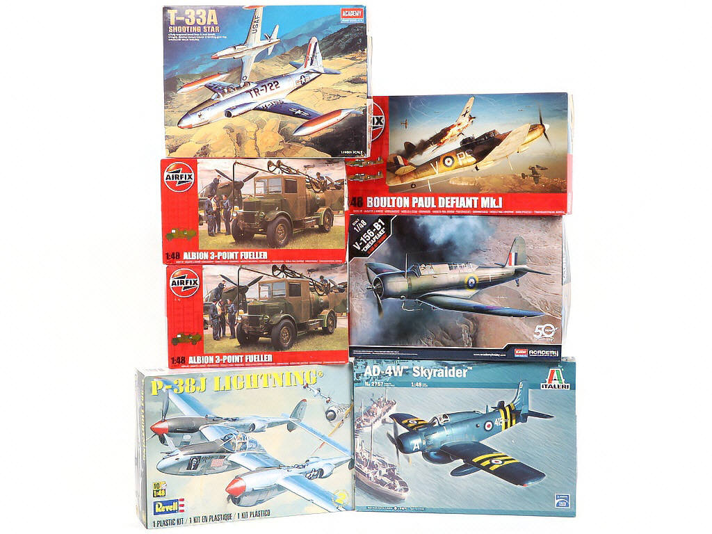 échelle : 1/48ème - comprend les marques : AIRFIX, ACADEMY, REVELL & ITALERI - 4 boîtes scellée & 3 ouvertes (éléments en grappes sous sachets avec notices & planches d'autocollants)