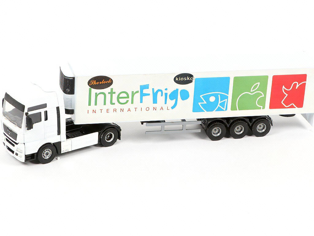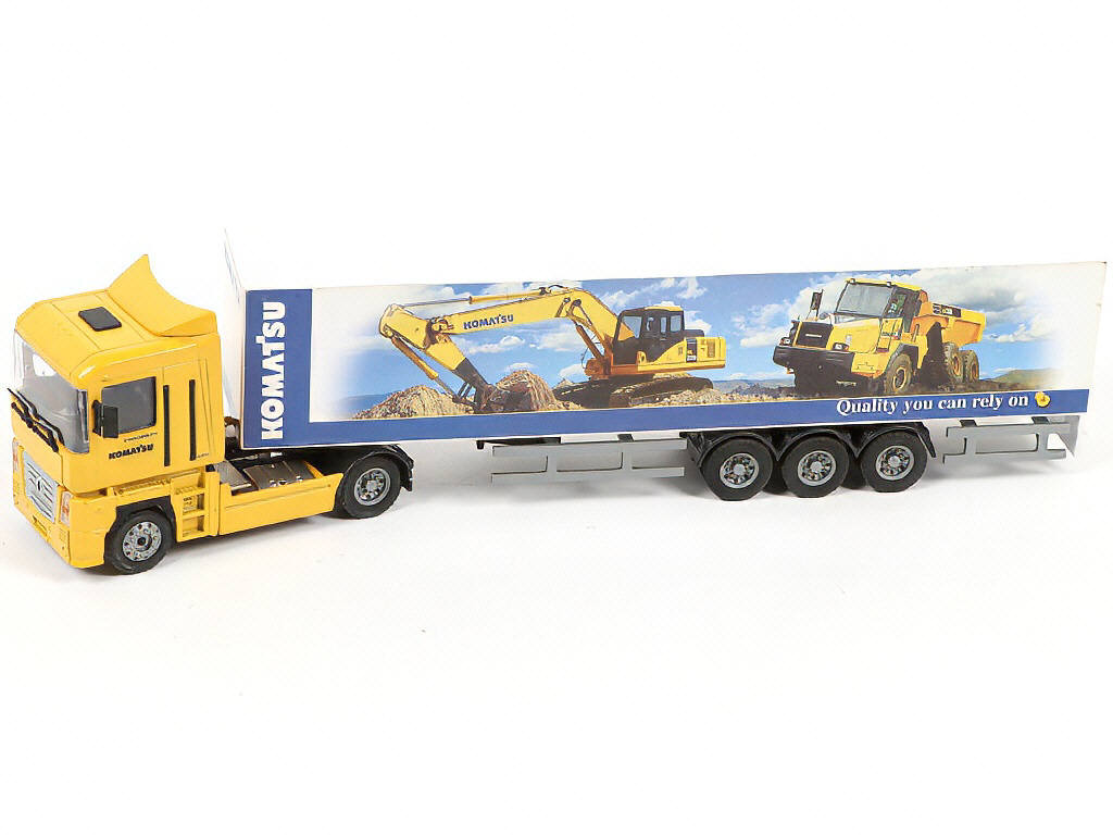 échelle 1/50ème - comprend les modèles : RENAULT MAGNUM réf 373 & MAN V8 réf 395 (petite déchirure de l'illustration de la remorque