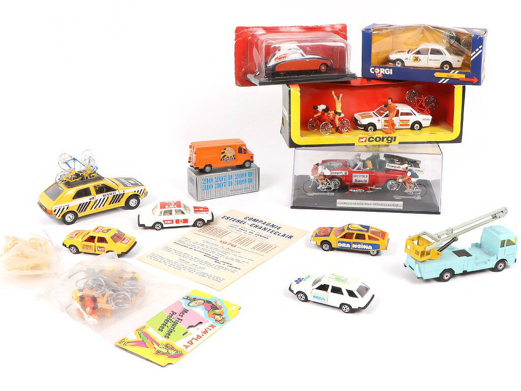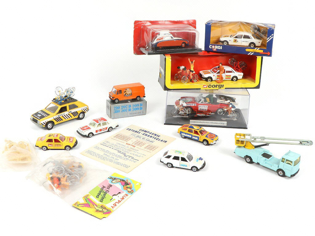 comprend notamment la marque CORGI TOYS - on y retrouve quelques cyclistes en résine non peints - on y joint une affiche d'époque - possibilité de petits manques & parties cassées
