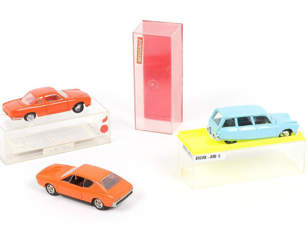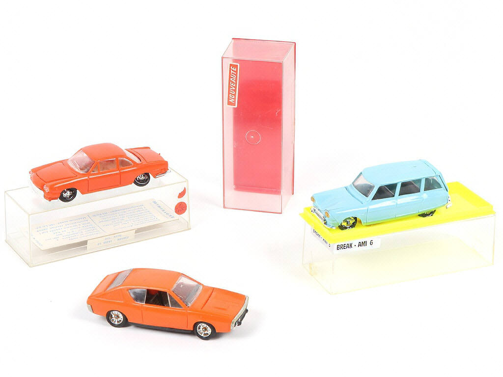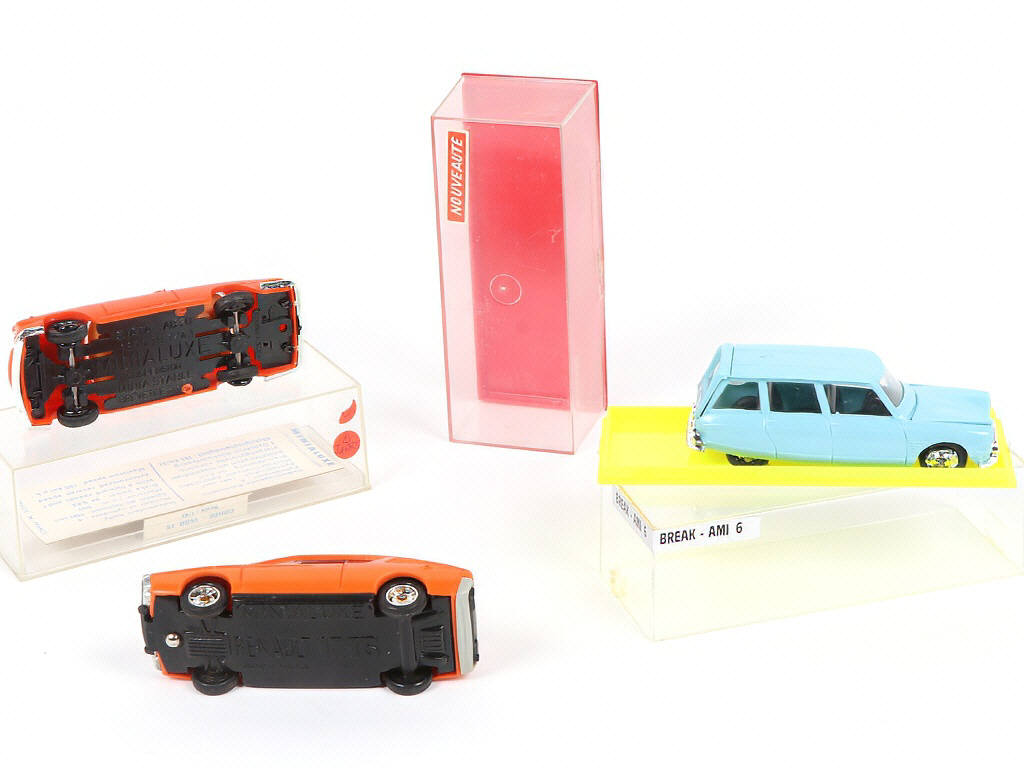 jantes & pneus fondus sur 2 exemplaires (CITROEN Break AMI 6 collée sur socle) - légères déformations - fêle sur une boîte