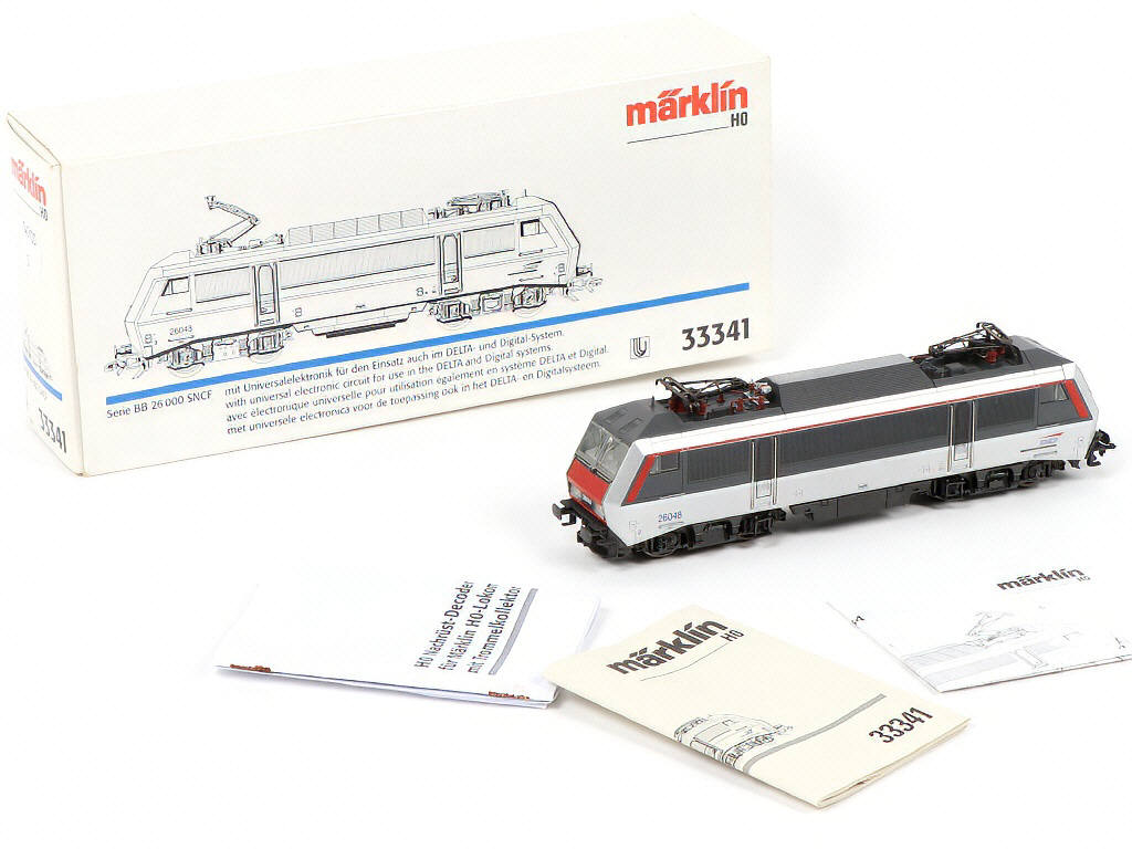MÄRKLIN 'HO' (ALLEMAGNE) 33341 Motrice électrique type BB 26048 'SNCF' argent, gris & filets rouges