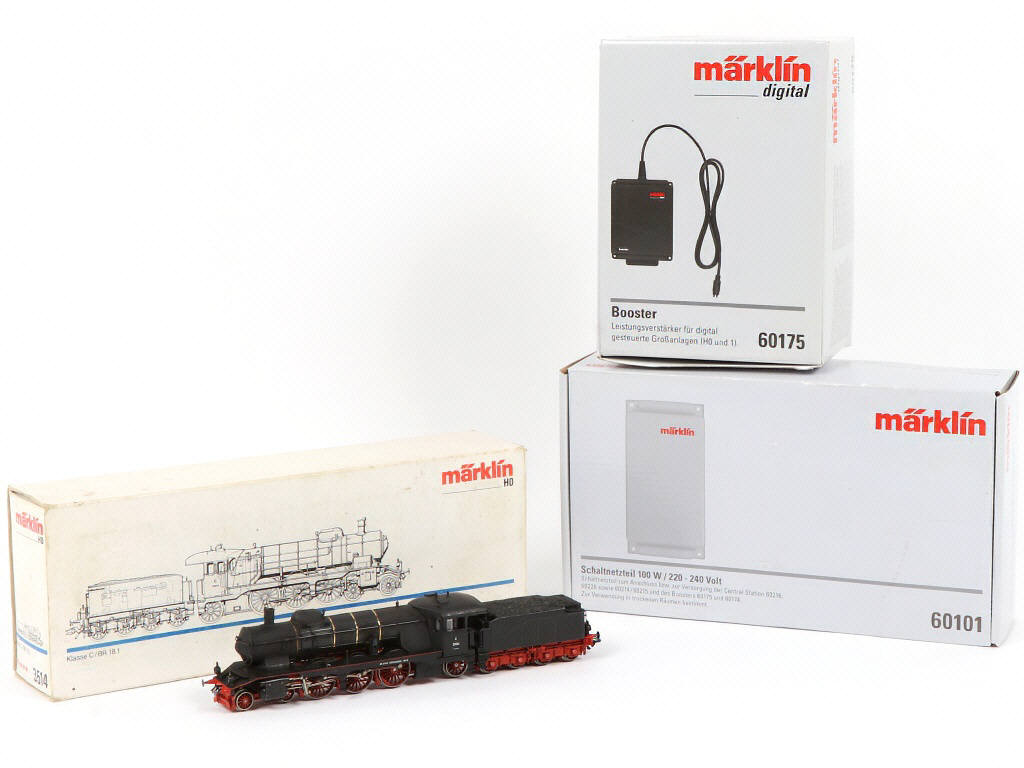 MÄRKLIN 'HO' (ALLEMAGNE) 3514 Locomotive à vapeur Classe C BR 18.1 avec tender noir & rouge