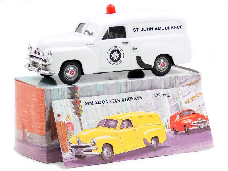 MINT & BOXED (AUSTRALIE) MM 002 HOLDEN FJ Van 'ST.JOHN AMBULANCE' blanc
