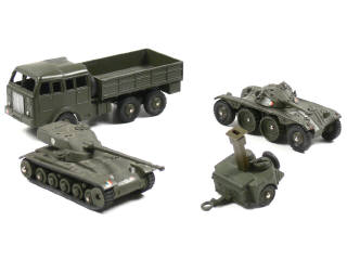 DINKY TOYS (FRANCE) Ensemble de 3 véhicules militaires & une cuisine roulante