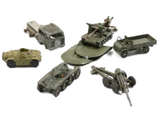 DINKY TOYS (FRANCE) Ensemble de 5 véhicules militaires & un canon kaki