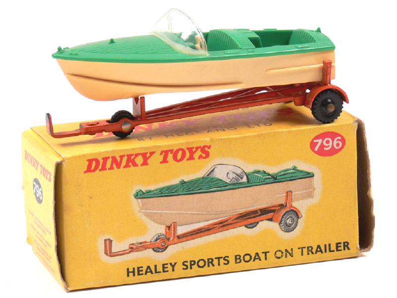 DINKY TOYS (GB) 796 HEALEY SPORTS BOAT avec remorque orange, crème & vert