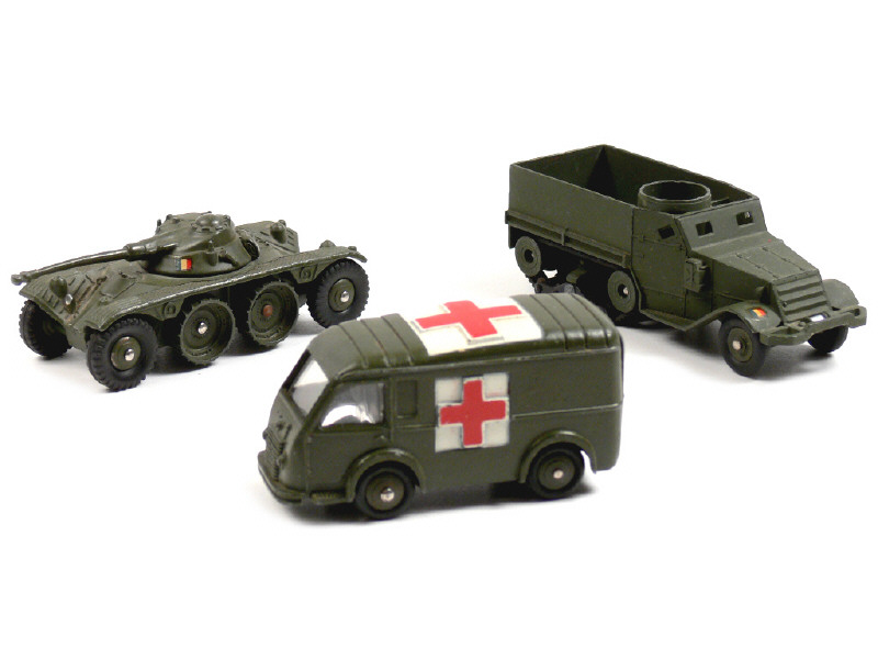 DINKY TOYS (FRANCE) Ensemble de 3 véhicules militaires kaki