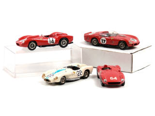 miniatures reproduisant les modèles : 500 TR, 250 TR, TESTAROSSA (pare-brise à refixer) & TR - on y retrouve les marques : PRECISION MINIATURES, STARTER & GAFFE - boîtes non d'origine - 2 pare-brises à refixer