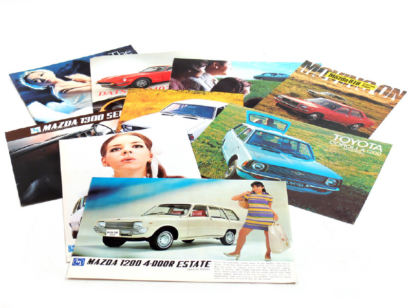 on y retrouve les marques : TOYOTA, MAZDA, DATSUN, HONDA, MITSUBISHI & NISSAN - on y joint 2 dépliants publicitaires de la marque HUNDAÏ