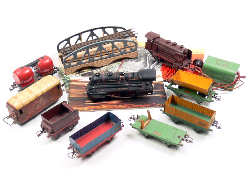 états de 'B' à 'E' - avec manques & quelques traces d'oxydation - on y retrouve les marques HORNBY & JEP - on y joint 3 catalogues des marques HORNBY HO, JOUEF & LIMA