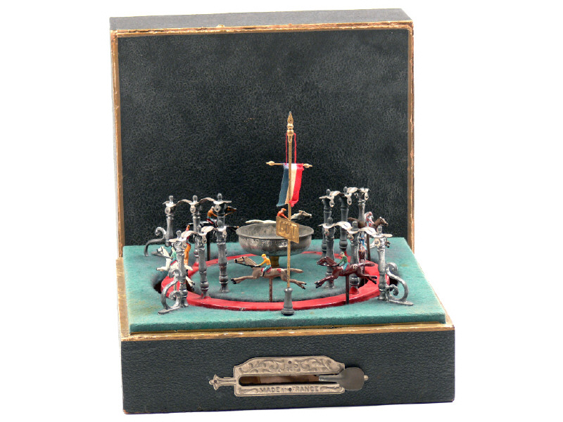 dimensions 27 x 27 cm - avec mât & drapeau - un élément cassé en 2 endroits - quelques éclats sur le plateau tournant - BEL ASPECT GENERAL POUR UN JOUET DE CETTE EPOQUE !