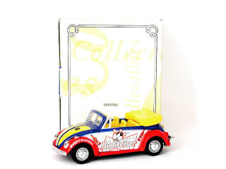 DINKY MATCHBOX DYM37622 VW COCCINELLE Cabriolet 'BUDWEISER' de 1968 rouge, bleu, blanc & jaune