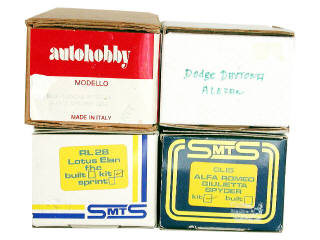 miniatures reproduisant les modèles : DODGE DAYTONA, LANCIA AURELIA B24S Spider 1955, ALFA ROMEO GIULIETTA Spider & LOTUS ELAN - on y retrouve les marques : ALEZAN, AUTOHOBBY & SMTS