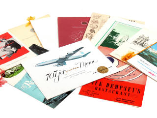 DIVERS Ensemble de 26 menus de restaurants & de compagnies aériennes des années 1950 & 1960