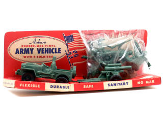 AUBURN RUBBER COMPANY (USA) 318 JEEP & canon tracté avec 5 soldats kaki