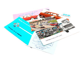 présentent les modèles suivants : DAF 600, DKW JUNIOR, la gamme FIAT (500, 600, 1100, 1200, 1500 & 1800) & LANCIA (APPIA & FLAMINIA) - on y joint un feuillet publicitaire de la marque LANCIA & une liste de tarifs de la marque FIAT