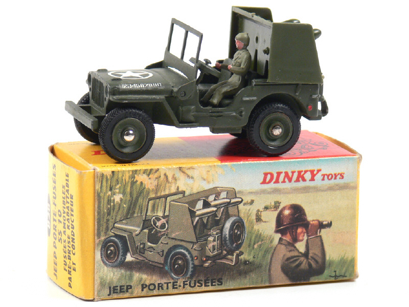 DINKY TOYS (FRANCE) 828 JEEP WILLYS Porte-fusées SS 10 kaki