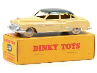 DINKY TOYS (FRANCE) 24V BUICK ROADMASTER (version avec intérieur de toit quadrillé & jantes chromées) jaune paille, toit vert