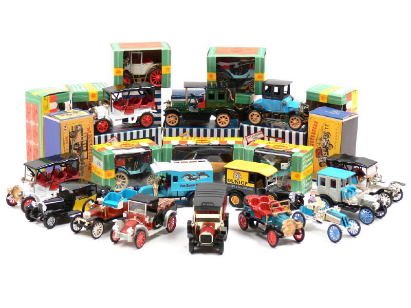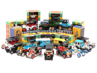 miniatures reproduisant notamment les modèles : MERCEDES, BENZ, FIAT, OPEL, OPEL-DARRACQ, RENAULT, MERCEDES-SIMPLEX, N.A.G., BENTLEY, ROLLS ROYCE, PEUGEOT, PACKARD, BUGATTI, UNIC, TALBOT, FORD & SPYKER - on y retrouve les marques : ZISS-MODELL, GAMA, MATCHBOX MODELS OF YESTERYEAR, BRUMM & MINIALUXE - une boîte en état 'c' -14 véhicules sans boîte