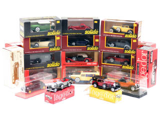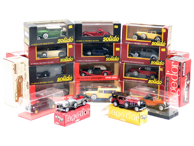 série 'AGE D'OR' - miniatures reproduisant les modèles : DUESENBERG, RENAULT, CORD, MERCEDES, DELAHAYE, CADILLAC, BUGATTI, ROLLS-ROYCE, FIAT, DELAGE, TALBOT, CITROËN, VOISIN & HISPANO-SUIZA - quelques boîtes en état 'c' & 'd' - quelques petits manques