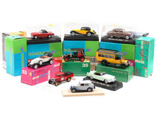 miniatures reproduisant les modèles : ROLLS-ROYCE, LINCOLN, FIAT, RENAULT, MERCEDES, LANCIA, PANHARD, JAGUAR, CITROËN, FACEL-VEGA, HISPANO-SUIZA, FORD, DELAGE, BUGATTI, STUDEBAKER, CHEVROLET, DELAHAYE & PEUGEOT - quelques boîtes en état 'c' & 'd' - quelques petits manques