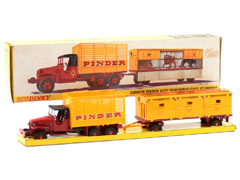 DINKY TOYS (FRANCE) 881 GMC 'PINDER' avec remorque-cage à fauves rouge & jaune