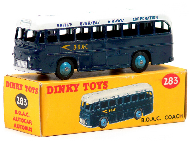 DINKY TOYS (GB) 283 Bus 'B.O.A.C' bleu foncé, toit blanc & jantes bleu vif