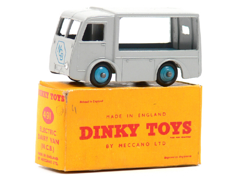 DINKY TOYS (GB) 491 Electric dairy van 'N.C.B.' gris clair, jantes & plateau bleu