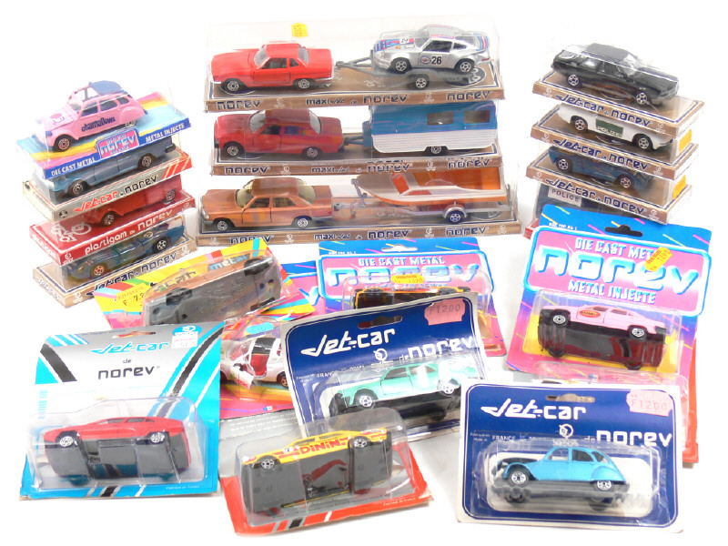 NOREV - JET CAR (FRANCE) Ensemble de 20 voitures, une camionnette, un bateau, une caravane & une remorque