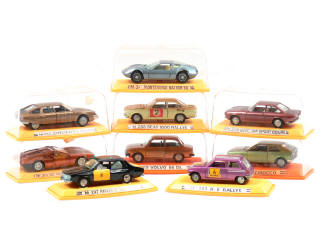 comprend : MONTEVERDI HAI 450 SS, DE TOMASO MANGUSTA, VOLKSWAGEN SCIROCCO, SEAT 1600 RALLYE, RENAULT 5 RALLYE, SEAT 124 SPORT COUPE, CITROËN CX PALLAS, VOLVO 66 DL & RENAULT 12 S TAXI DE BARCELONE