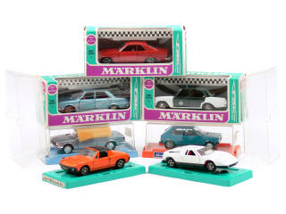 comprend : VOLKSWAGEN POLO, BMW 316, VOLKSWAGEN-PORSCHE 914, MERCEDES C III, MERCEDES 250 POLIZEI, AUDI 100 LS & OPEL MANTA - 3 boîtes en état 'c'