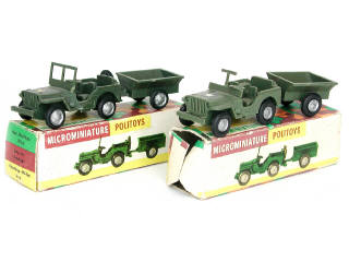 POLITOYS (ITALIE) 9 JEEP HOTCHKISS WILLYS avec remorque kaki