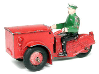 DINKY TOYS (FRANCE) 14A Triporteur (dernière version avec roues à pneus 'M') rouge, jantes rouges & pilote à chemise verte