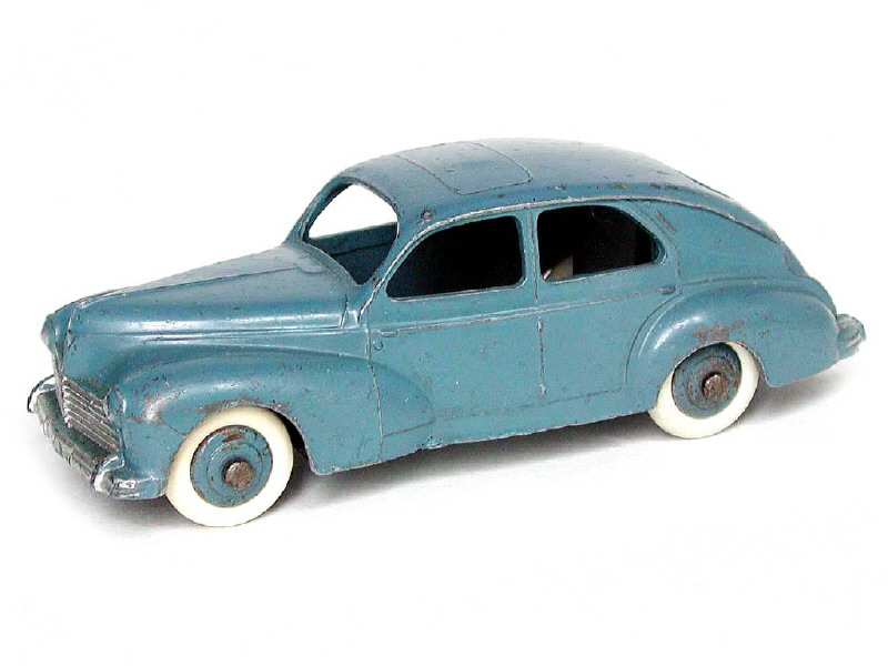 DINKY TOYS (FRANCE) 24R PEUGEOT 203 Petite lunette arrière (version avec intérieur de toit quadrillé & ailes lisses) bleu pétrole, jantes identiques