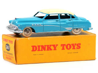 DINKY TOYS (FRANCE) 24V BUICK ROADMASTER (version avec intérieur de toit quadrillé & jantes chromées) bleu, toit crème