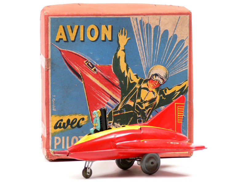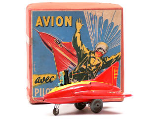 envergure 18,5 cm - moteur à ressort (fonctionne) - avec pilote & son parachute - instructions sur le verso de couvercle de boîte