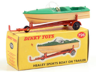 DINKY TOYS (GB) 796 HEALEY SPORTS BOAT avec remorque orange, crème & vert