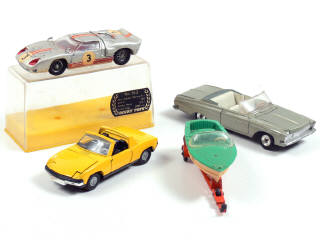 DINKY TOYS (GB) Ensemble de 3 voitures & un canot sur remorque