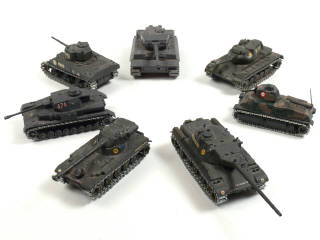 comprend : AMX 13, AMX 30, PANZER IV, CHERMAN MIV, PATTON M47, TIGRE I (plancher repeint) & SOMUA S35 - avec manques
