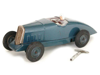 longueur 32 cm - moteur à clef (fonctionne) - pilote recollé - manques sur les décalques - calandre légèrement oxydée - avec clef