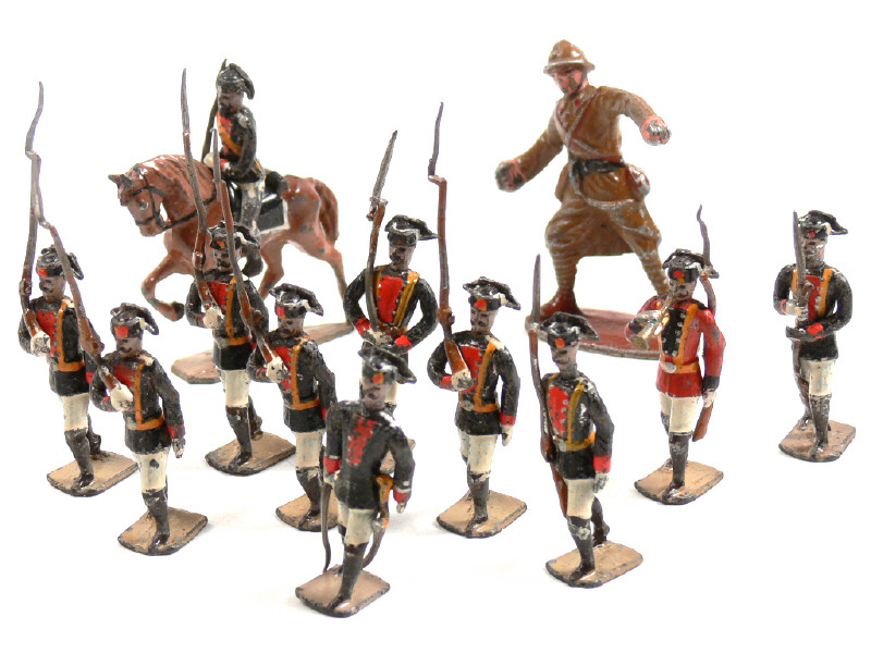 états de 'D' à 'E' - comprend : un cavalier sur sa monture & 10 soldats - on y joint un soldat français de la marque QUIRALU en état 'D'