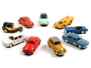 états de 'A' à 'D' - miniatures reproduisant les modèles : RENAULT, VOLKSWAGEN, CITROËN, PEUGEOT, TRIUMPH & PORSCHE - quelques petits manques